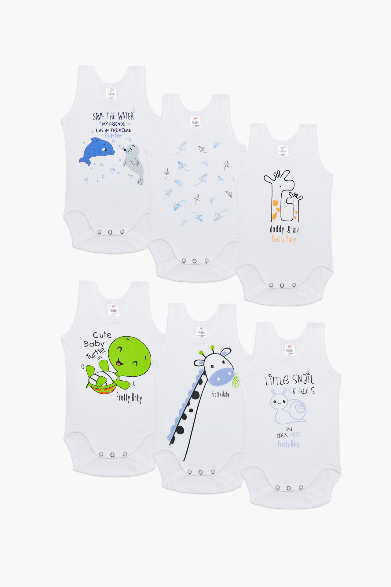 Βρεφικά εσώρουχα Save Water. Συσκευασια 6 Κορμακια Τιραντα, Βαμβακερα 100%