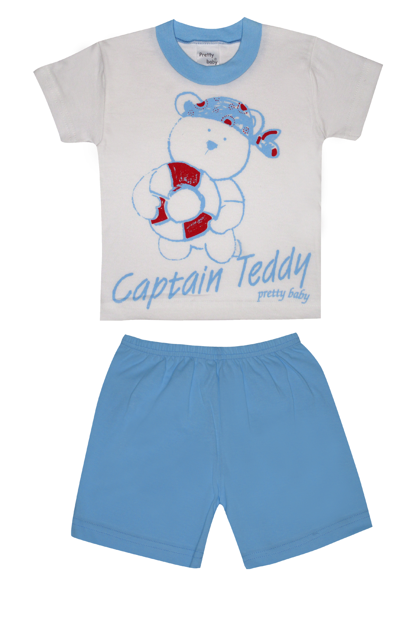 Βρεφική καλοκαιρινή πυτζάμα Captain Teddy από 100% βαμβακερό λεπτό ύφασμα υψηλής ποιότητας. Έχει σχεδιαστεί για να φοριέται όχι μόνο σαν πυτζάμα αλλά και σαν ρούχο . Το σετ περιλαμβάνει μπλούζα με ελαστική λαιμόκοψη και διακοσμητικό τύπωμα στο στήθος, καθώς και κοντό παντελονάκι. Κατασκευάζεται από 100% πενιέ βαμβάκι ώστε να αναπνέει το σώμα. Δεν χάνει την άνετη καλοκαιρινή φόρμα του και αντέχει στο πλύσιμο Τα τυπώματα είναι κατασκευασμένα από νεροχρώματα και δεν περιέχουν τοξικές ουσίες. Η υψηλή ποιότητα μας παραμένει η ίδια από το 1989 καθιστώντας τα συγκεκριμένα προϊόντα τα πιο αναγνωρίσιμα στον καταναλωτή. Διατίθεται σε συσκευασία σετ παντελόνι & μπλούζα.