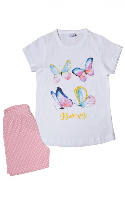 Παιδικές πυζάμες. Παιδικό σετ 2 τεμαχίων butterfly,ψιλή πλέξη υφάσματος, βαμβακερό 100%