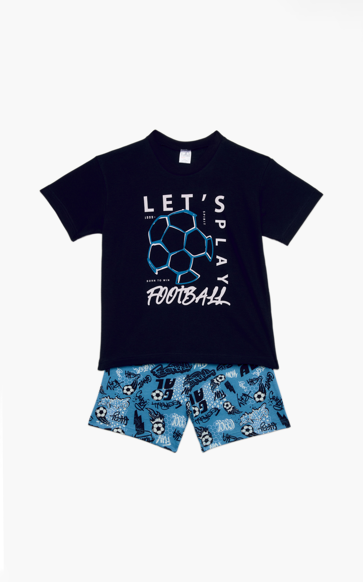 Παιδικές πυζάμες. Παιδικό σετ 2 τεμαχίων Football, ψιλή πλέξη υφάσματος, βαμβακερό 100%