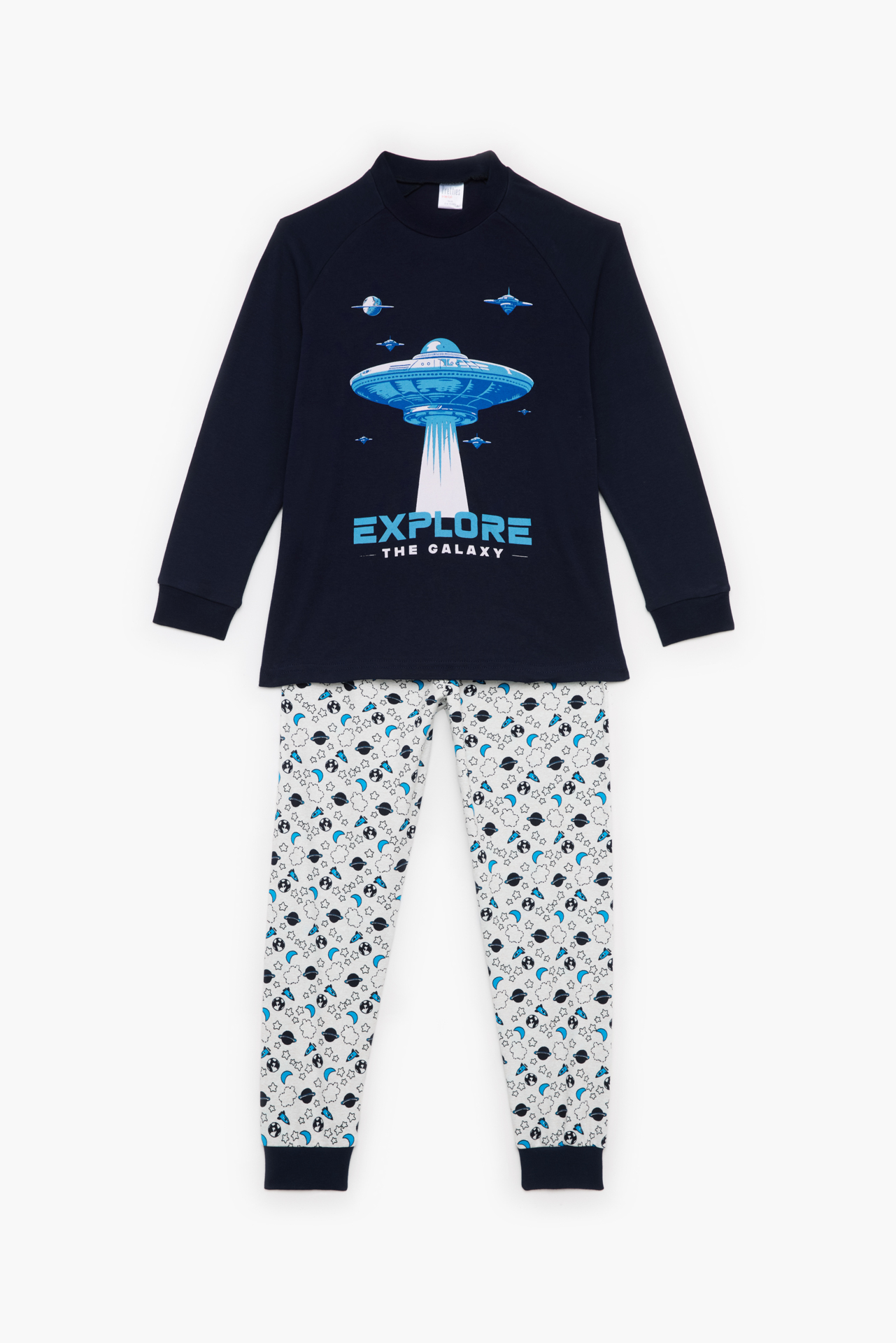 Παιδικές πυζάμες. Πυζάμα παιδική χειμερινή με τύπωμα Galaxy , Bαμβακερή 100%