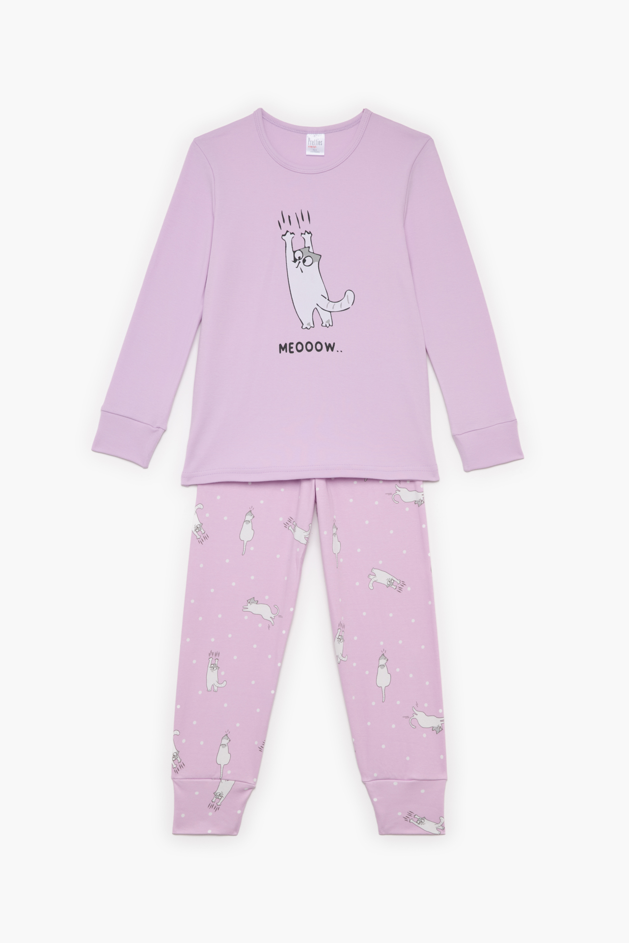 Παιδικές πυζάμες. Πυζάμα παιδική χειμερινή με τύπωμα Γάτα, Bαμβακερή 100%