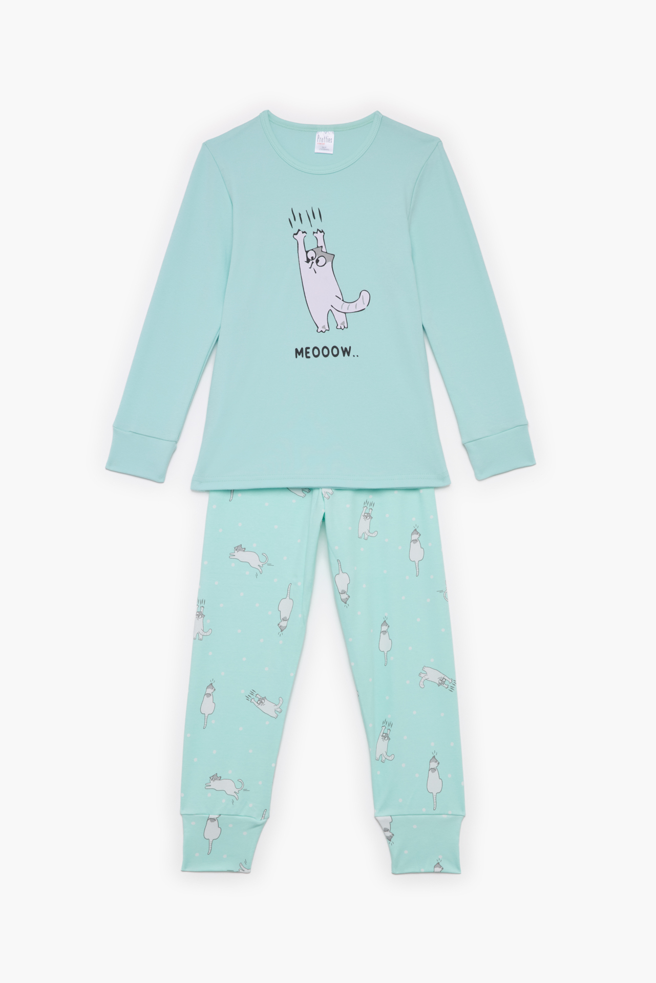 Παιδικές πυζάμες. Πυζάμα παιδική χειμερινή με τύπωμα Γάτα, Bαμβακερή 100%