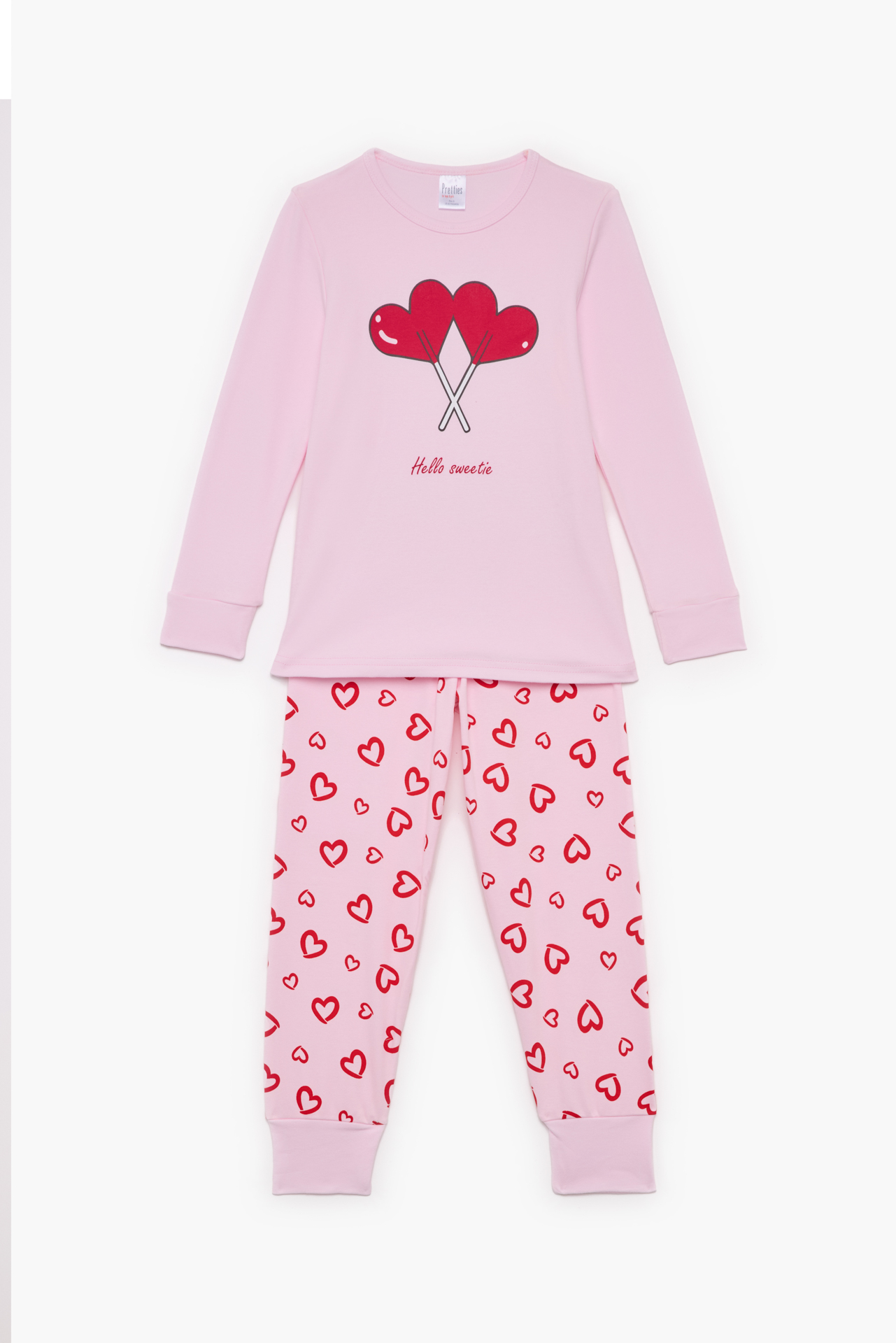 Παιδικές πυζάμες. Πυζάμα παιδική χειμερινή με τύπωμα Hello sweetie, Bαμβακερή 100%