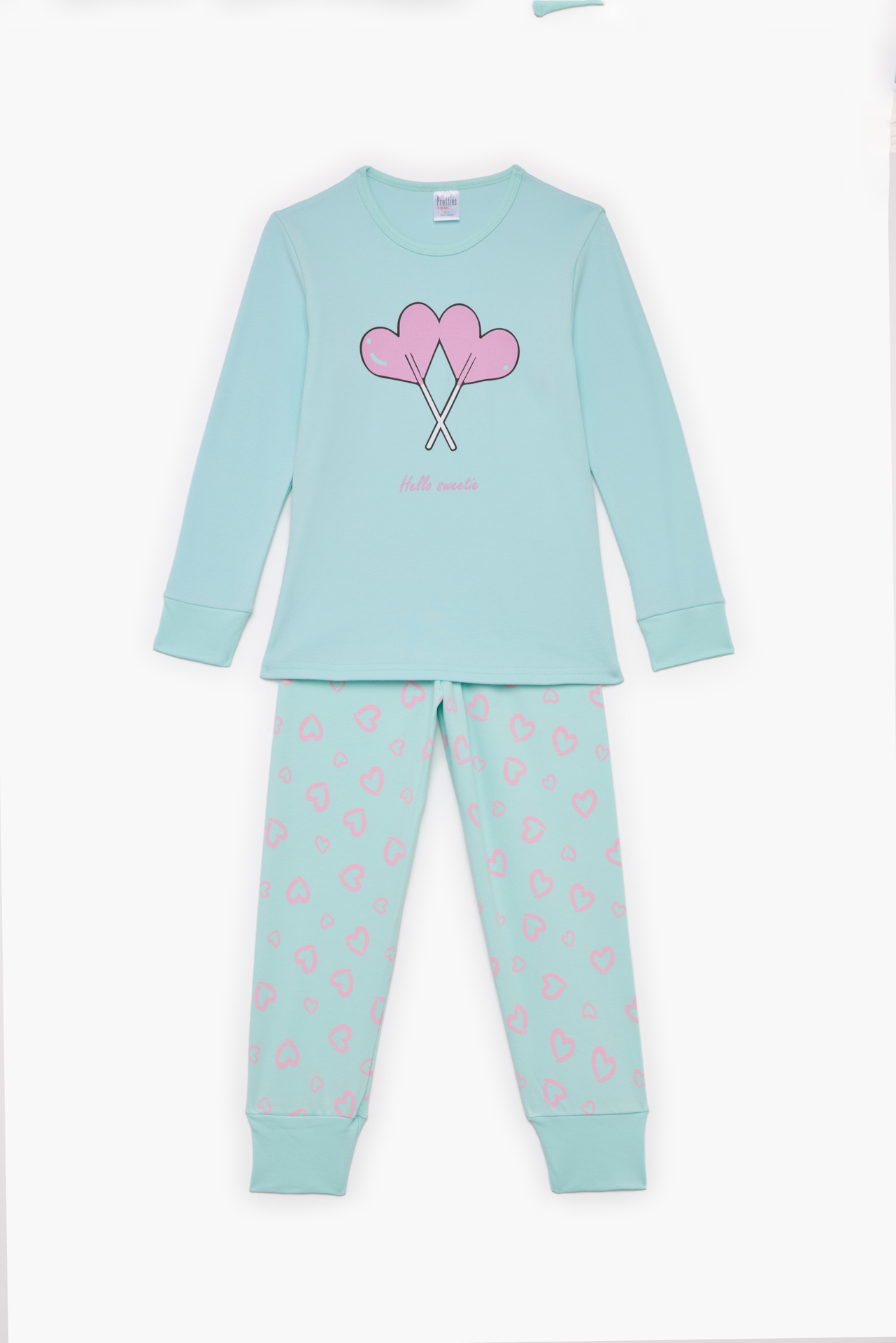 Παιδικές πυζάμες. Πυζάμα παιδική χειμερινή με τύπωμα Hello sweetie, Bαμβακερή 100%