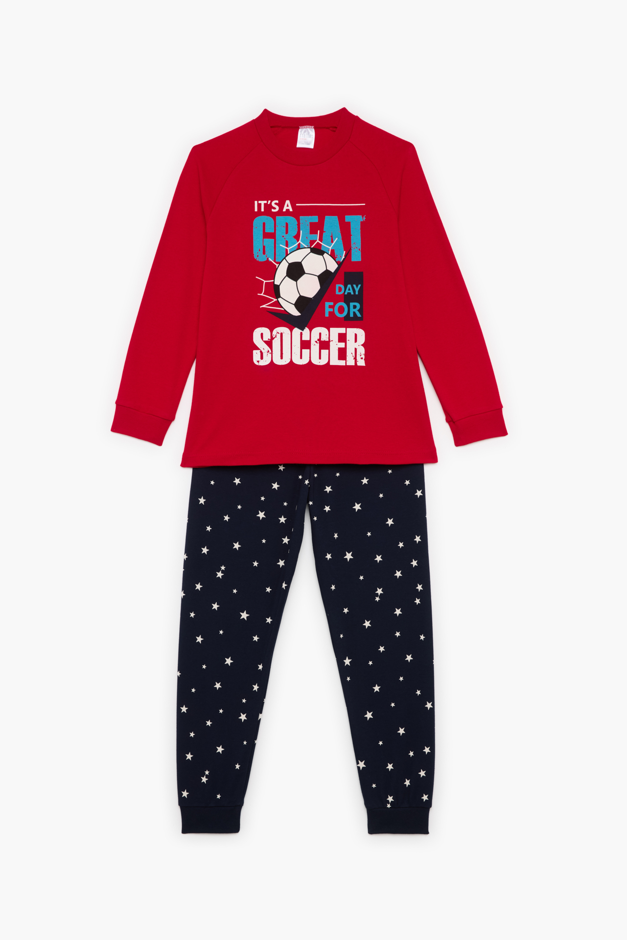 Παιδικές πυζάμες. Πυζάμα παιδική χειμερινή με τύπωμα Soccer , Bαμβακερή 100%